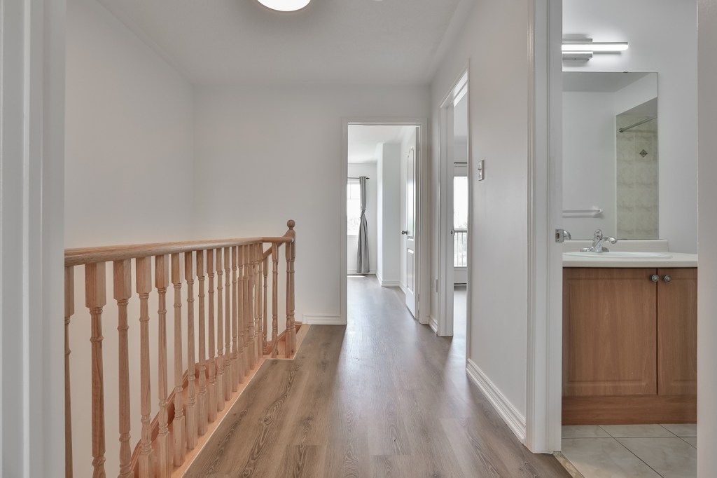 Inside, you’ll find thoughtful selected quality upgrades, including hardwood on the main floor, new vinyl flooring on the second floor and in the fully finished basement, which features a spacious 4-piece bathroom—ideal for guests or extended family. Step out onto your second-floor balcony through elegant French doors and take in peaceful park views while enjoying your morning coffee.