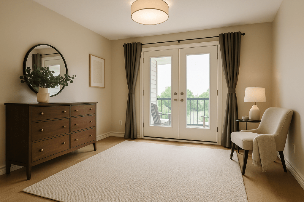 ✨ French doors walk out to second-floor balcony with park views